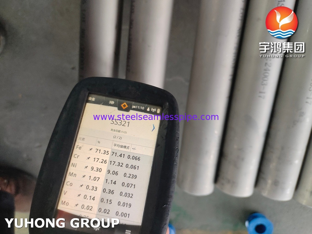 ASTM A312 TP321 roestvrijstalen naadloze pijpen zijn voornamelijk samengesteld uit chroom (Cr), nikkel (Ni) en een kleine hoeveelheid titanium (Ti) elementen. De toevoeging van deze elementen geeft de buis unieke eigenschappen: