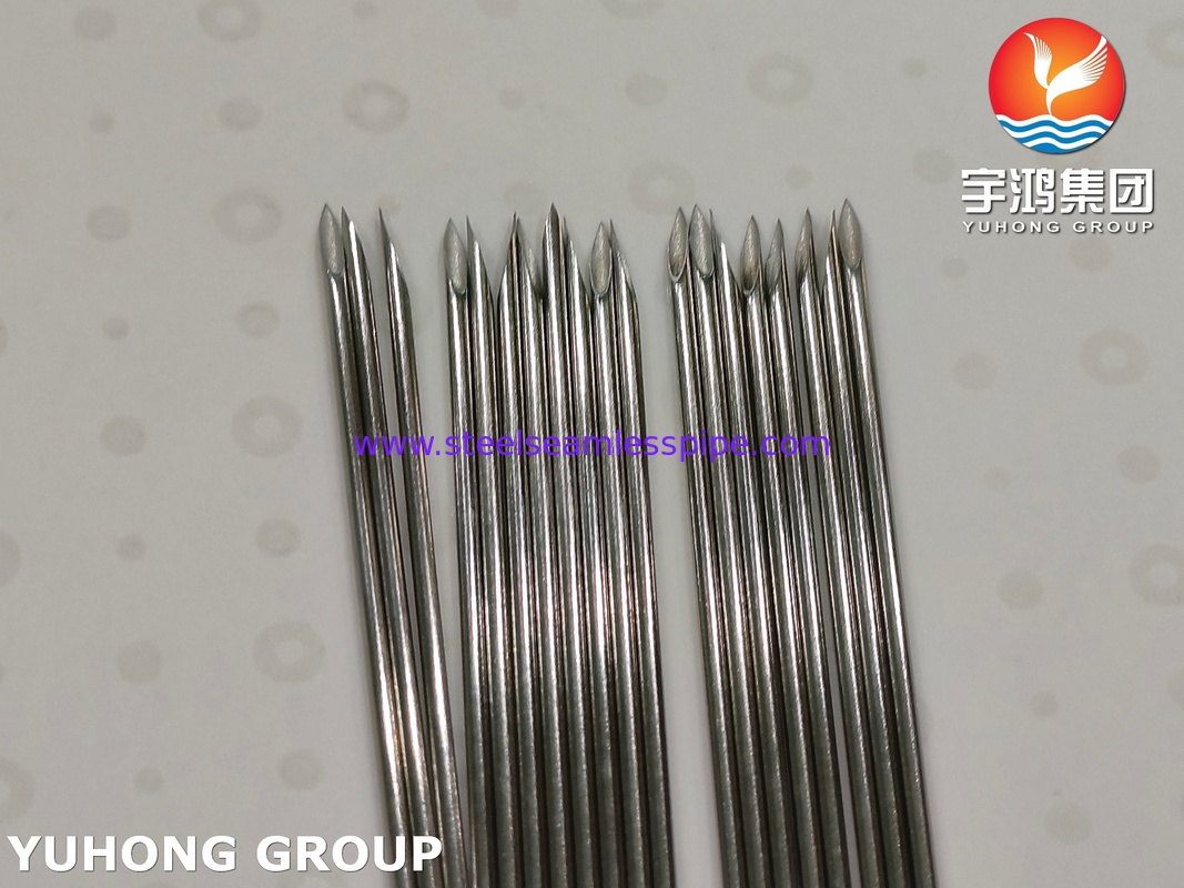 A Medical Stainless Steel 304 Tri-bevelled Veterinary Needle Tube is the core component of a hypodermic needle used in veterinary medicine. It is a precise, hollow, cylindrical metal tube that is attached to a syringe hub and is responsible for penetrating the animal's skin and tissues to deliver an injection (or withdraw fluid). The veterinary needle tube is a medical tool used in animal care for injecting vaccines, medications, liquids or drawing blood. Veterinary needles can be in various sizes and lengths to accommodate different species and injection types, ranging from small pets to large farm animals. They are made of medical-grade stainless steel 304 due to its good corrosion resistance and formability. These needles are used for vaccinations, treatments, diagnoses and hydration. YUHONG GROUP is a leading supplier of stainless steel needle tubes,such as hypodermic needle tubes, veterinary needle tubes, blood collection needle tubes, etc..We can also grind different needle tips according to clients’ drawings or samples, like lancet bevel tip, blunt tip, quincke tip, back-cut tip and so on. If you’re interested in our SUS304 medical needle tubes, please don’t hesitate to contact us for detail information.